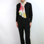 大判サイズのストールで肩から羽織る使い方もできます。春夏の日除けや室内の冷房対策としても使いやすくなっています。