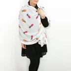 旅にも連れて行きたい軽さ、エアリーなコットンストール。コミカルなデザインで可愛らしい一枚です。