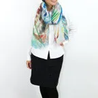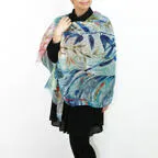 大判サイズのストールで肩から羽織る使い方もできます。春夏の日除けや室内の冷房対策としても使いやすくなっています。