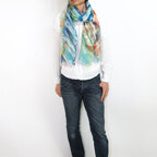 大判サイズのストールで肩から羽織る使い方もできます。春夏の日除けや室内の冷房対策としても使いやすくなっています。