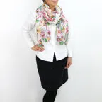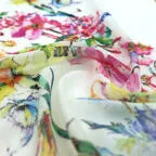 愛らしいカラフルな小花が咲き誇る、デザインで魅せるウールシルクストール。薄くて軽くてやわらかい質感も魅力です!