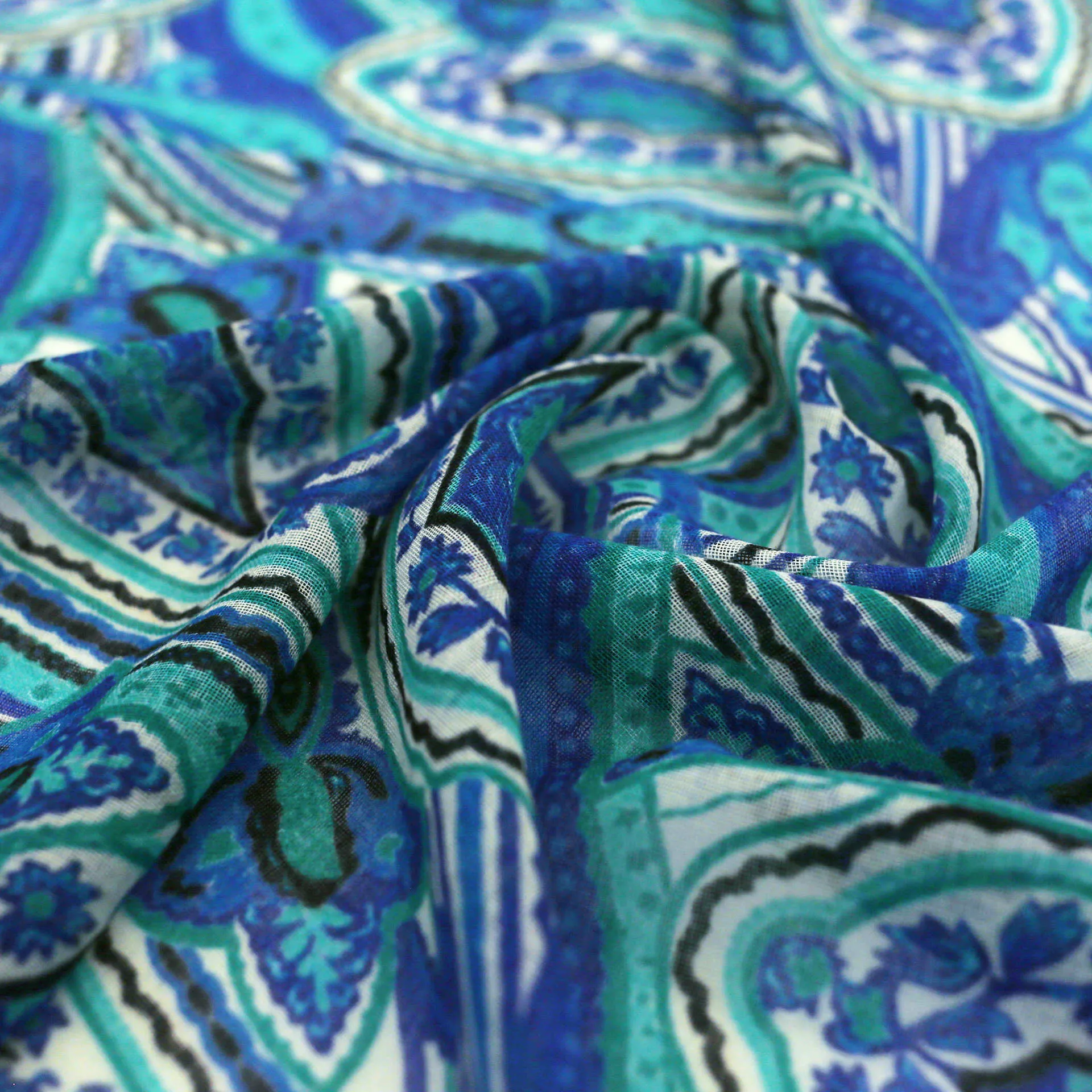 このストールは薄くて軽い生地です。使わないときは小さく折りたたみ、バッグに収納できます。外出先でも邪魔にならず、持ち運びにも便利です。