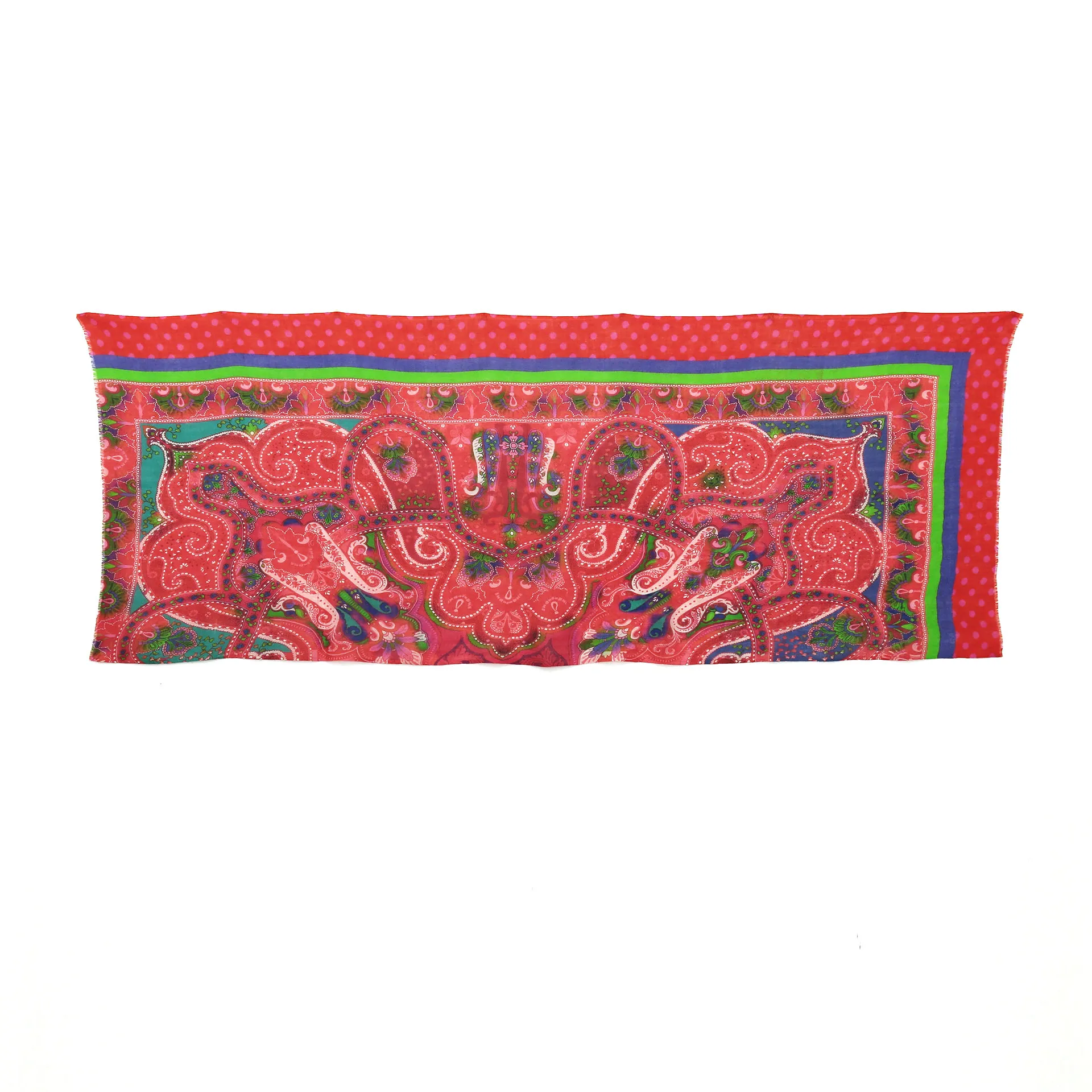 このストールは薄くて軽い生地です。使わないときは小さく折りたたみ、バッグに収納できます。外出先でも邪魔になることはありません。
