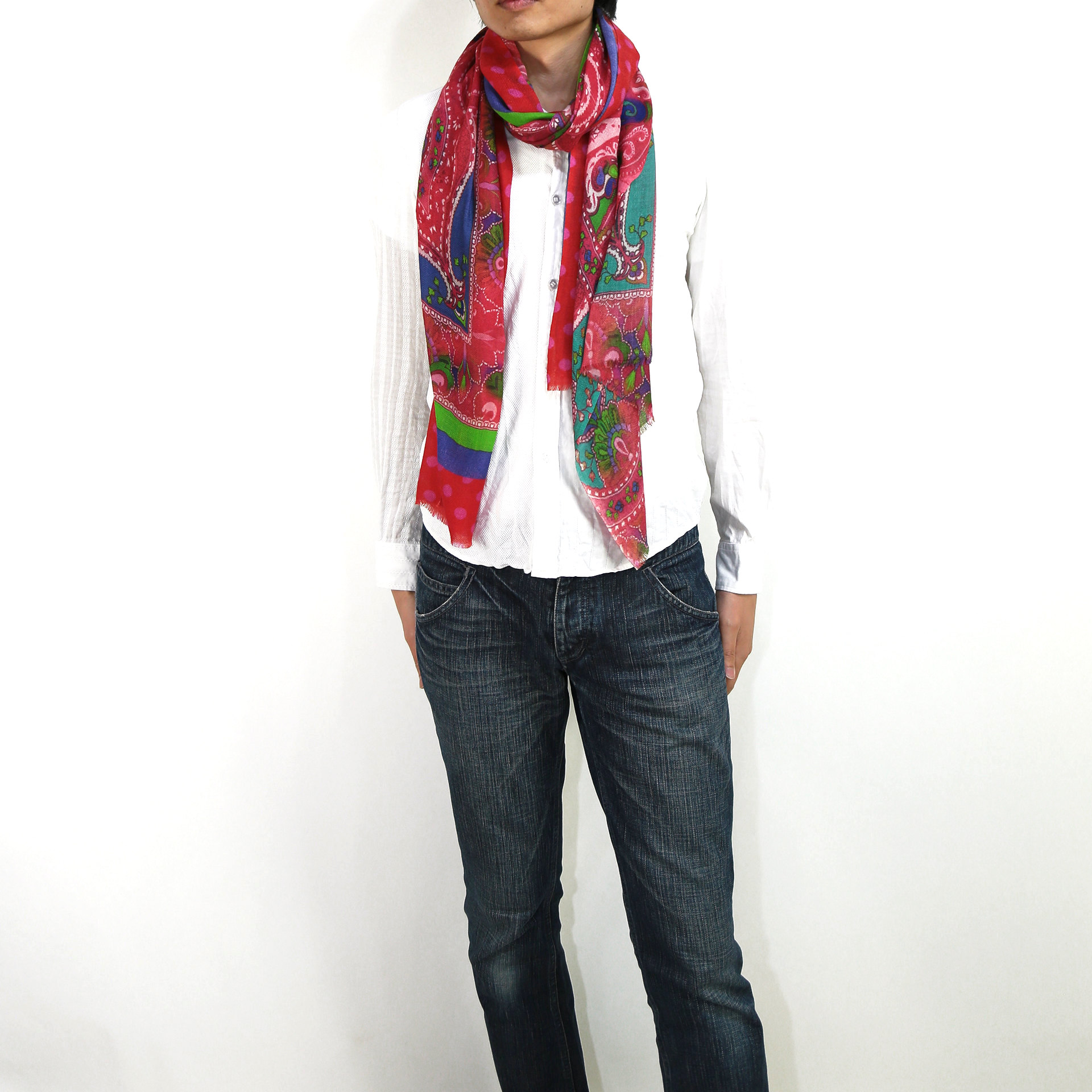生地感よりカジュアルな普段使いにも、少しフォーマルなシーンでも使いやすいタイプです。スタイルや場所を問わず合わせることができる優れたストールです。