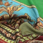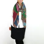 小粋な配色のカラーのペイズリーストール。巻き方によって様々な表情が楽しめます!
