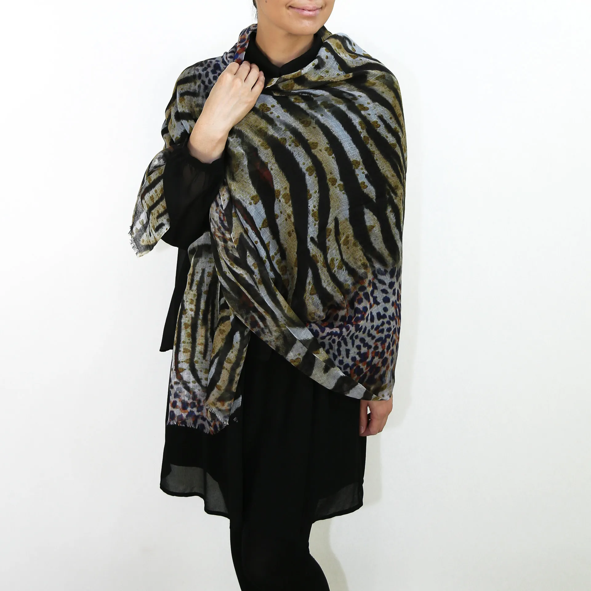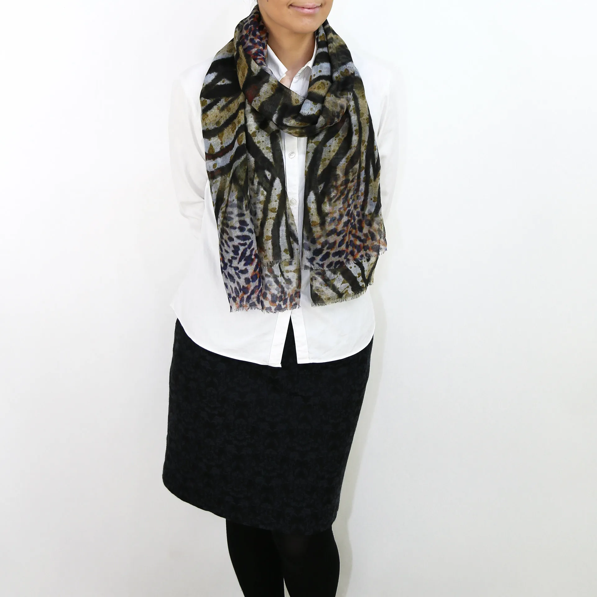 生地感よりカジュアルな普段使いにも、少しフォーマルなシーンでも使いやすいタイプです。スタイルや場所を問わず合わせることができる優れたストールです。