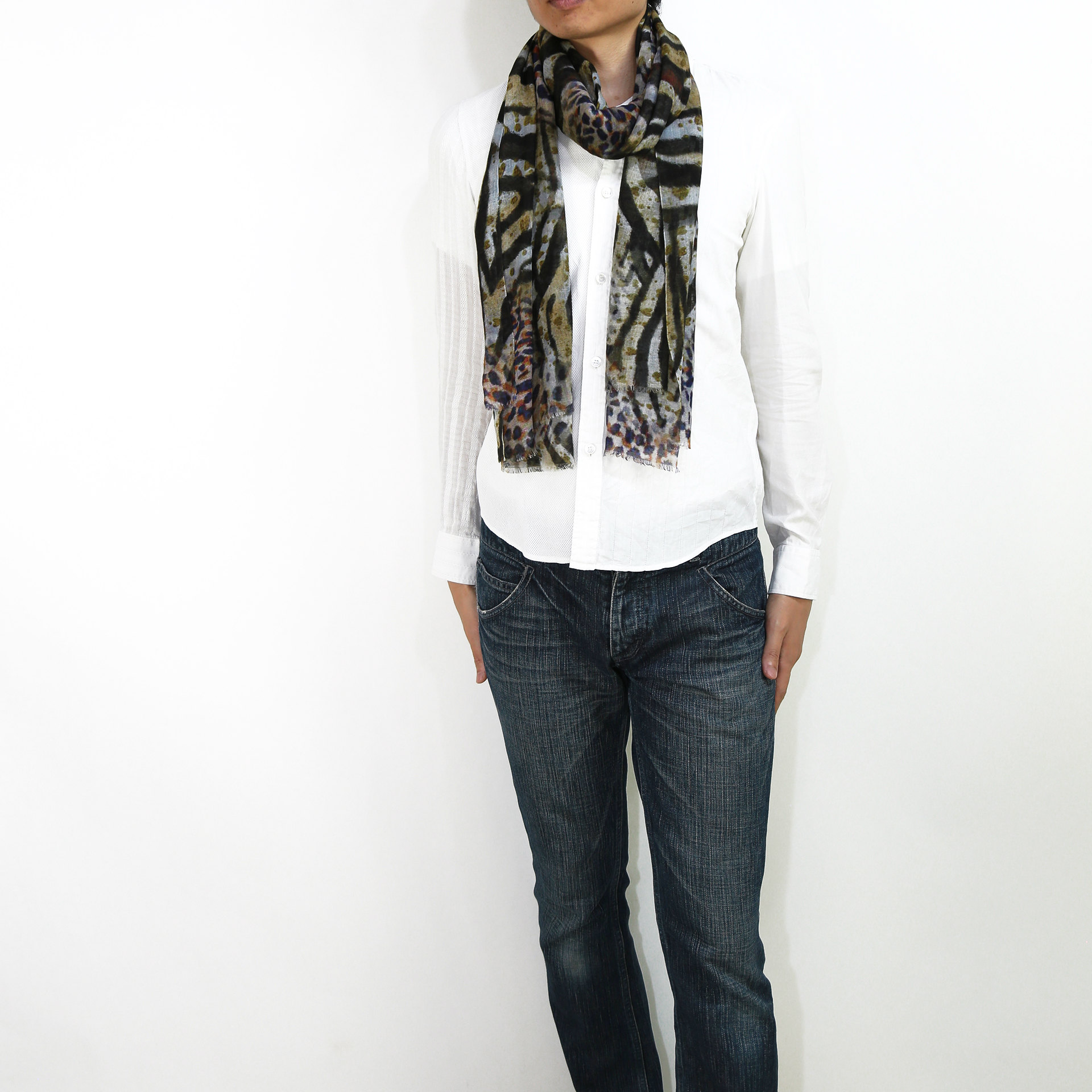 生地感よりカジュアルな普段使いにも、少しフォーマルなシーンでも使いやすいタイプです。スタイルや場所を問わず合わせることができる優れたストールです。