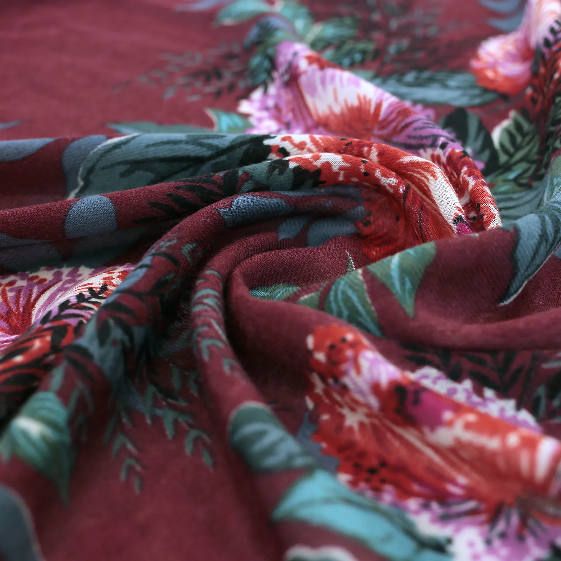 薄手の生地としなやかな風合いでボリュームを抑えてシャープに身につけることもできます。複雑な巻き方でも取り回ししやすく、さまざまな巻き方でおしゃれを楽しめます。