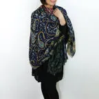 非常に大きなショールサイズで、広げて羽織れば上半身をすっぽりと覆うことができます。縦横の長さも十分にあるため、巻き方の自由度が広がります。程よいボリューム感と立体感を簡単につくることができるため、一巻きでこなれた印象になります。面積もあるので、真夏の室内での冷房対策や膝掛けとしても使いやすくなっています。