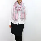 スタンダードな大判サイズで、首に巻くことはもちろん、室内でのひざ掛けにも、肩から羽織る使い方もできます。特に羽織りは、パッと華やかにエレガントな雰囲気に変わります。上半身を覆えるので、着ている服を気にせず合わせることができます。忙しい朝もコーディネートを気にする必要はありません。