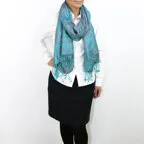 スタンダートな大判サイズで巻いても羽織っても、どちらも使いやすいタイプです。特に羽織は全体の印象がパッと華やかに、エレガントな雰囲気に変化します。