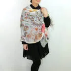 スタンダードな大判サイズで巻きでも羽織でもどちらでも使いやすくなっています。特に春夏の日除けや冷房対策としても使いやすく、ファッションのアクセントとしてなら一年中使うことができます。