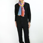 自然な風合いが魅力的なリネンで、お洒落なストールを作りました。ブロックパネル調のカラフルなデザインでアクセントに最適です!