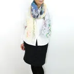 大判サイズのストールで肩から羽織る使い方もできます。春夏の日除けや室内の冷房対策としても使いやすくなっています。