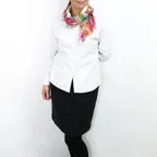 小ぶりなスクエアサイズで、アスコットタイのようにシャツやブラウスの中におさめて使うこともできます。室内でも巻いたままでいられるので使いやすくなっています。