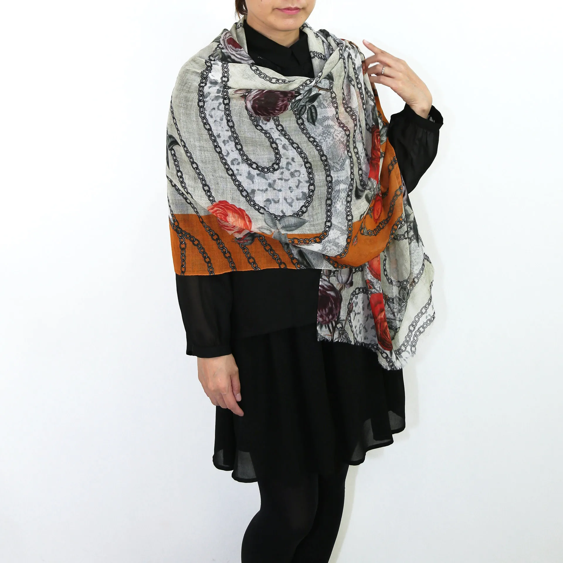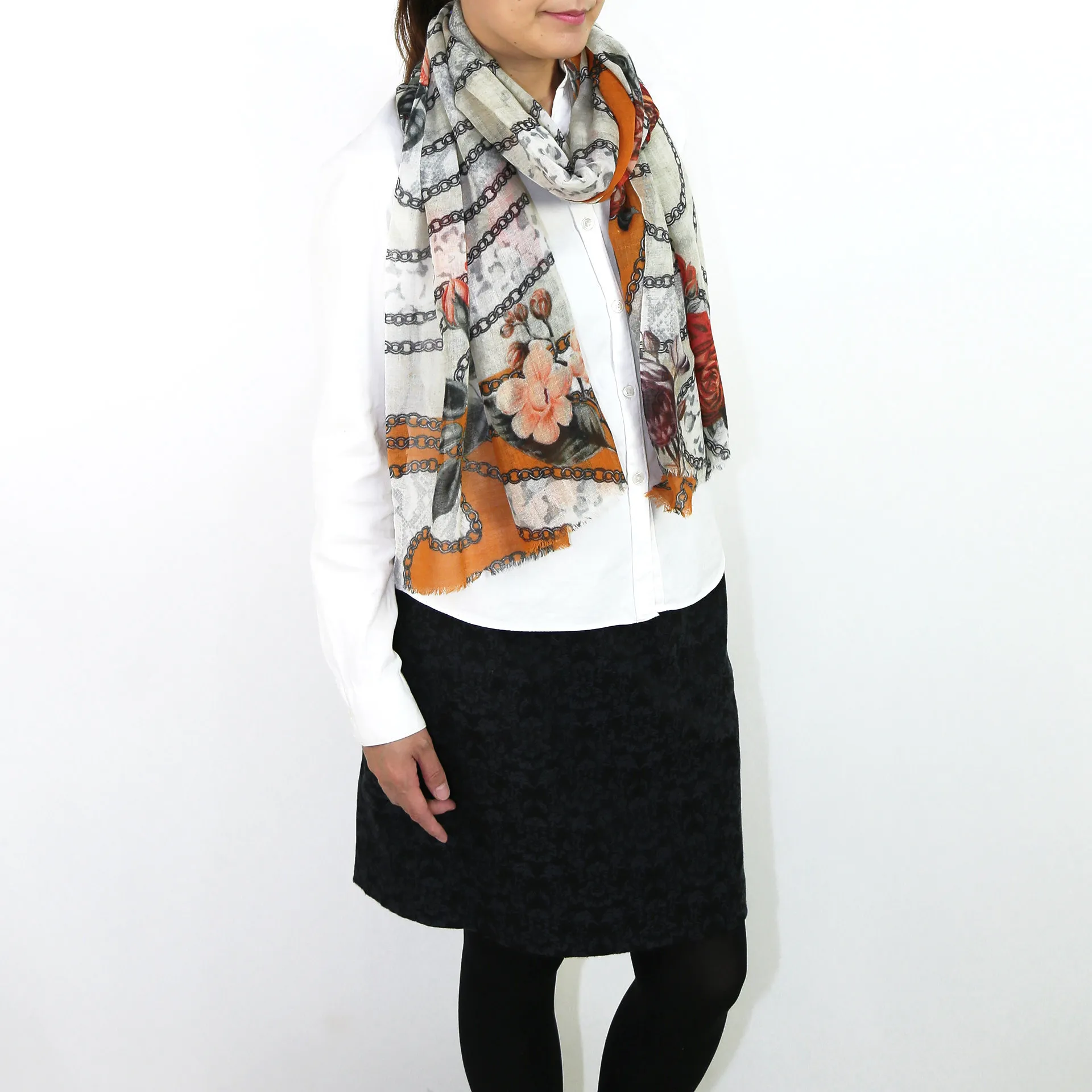 薄手の生地としなやかな風合いでボリュームを抑えてシャープに身につけることができます。複雑な巻き方でも取り回ししやすく、さまざまな巻き方でおしゃれを楽しめます。