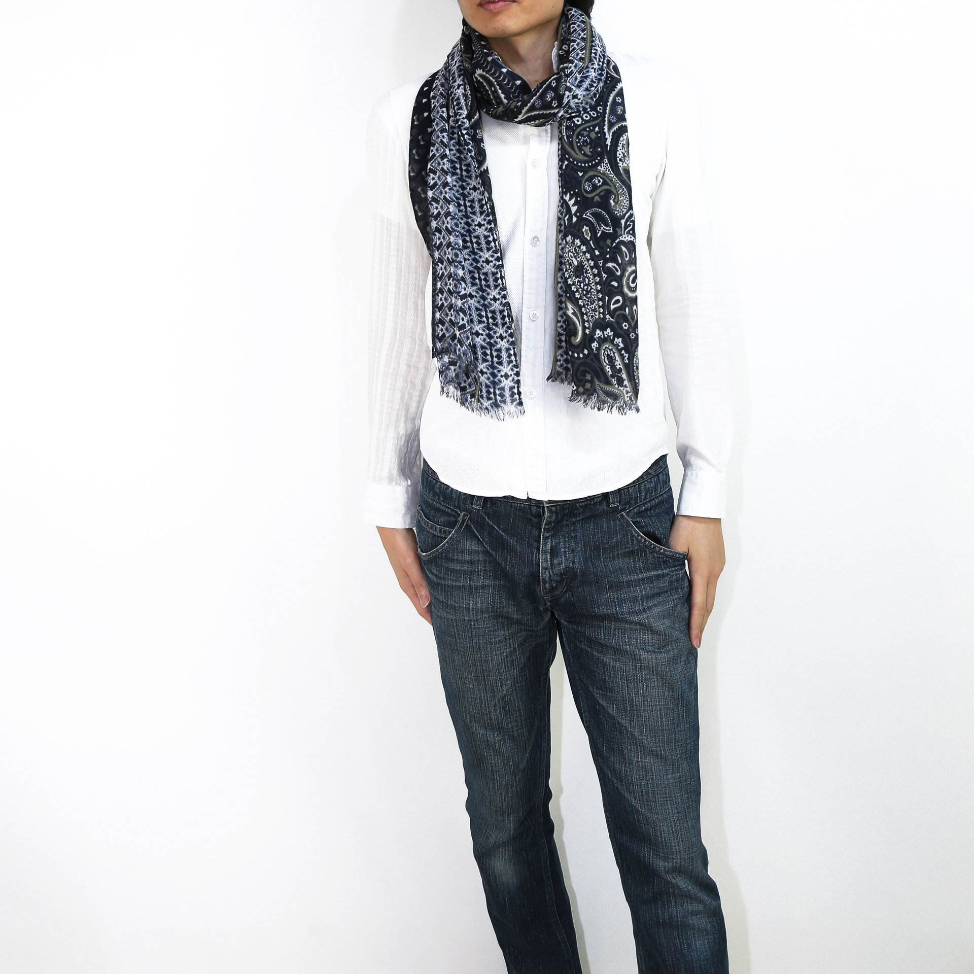 スタンダードな大判サイズで、秋冬だけでなく春までしっかり活躍します。また、真夏の室内での冷房対策としても使いやすくなっています。複雑な巻き方でも取り回ししやすく、さまざまな巻き方でおしゃれを楽しめます。