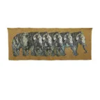大きなゾウが描かれた珍しいデザイン。落ち着いた色合いで合わせやすくなっています。