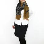 生地感よりカジュアルな普段使いにも、少しフォーマルなシーンでも使いやすいタイプです。スタイルや場所を問わず合わせることができる優れたストールです。