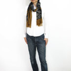生地感よりカジュアルな普段使いにも、少しフォーマルなシーンでも使いやすいタイプです。スタイルや場所を問わず合わせることができる優れたストールです。