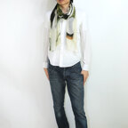 生地感よりカジュアルな普段使いにも、少しフォーマルなシーンでも使いやすいタイプです。スタイルや場所を問わず合わせることができる優れたストールです。