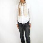 さらにアクセントとしてならカジュアルな装いにも合わせやすい、とても使い勝手の良いストールです。