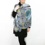 スタンダードな大判サイズで巻きでも羽織でもどちらでも使いやすくなっています。特に春夏の日除けや冷房対策としても使いやすく、ファッションのアクセントとしてなら一年中使うことができます。