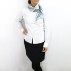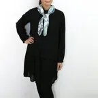 小ぶりなスクエアサイズで、アスコットタイのようにシャツやブラウスの中におさめて使うこともできます。室内でも巻いたままでいられるので使いやすくなっています。
