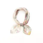 小ぶりなスクエアサイズで、アスコットタイのようにシャツやブラウスの中におさめて使うこともできます。室内でも巻いたままでいられるので使いやすくなっています。