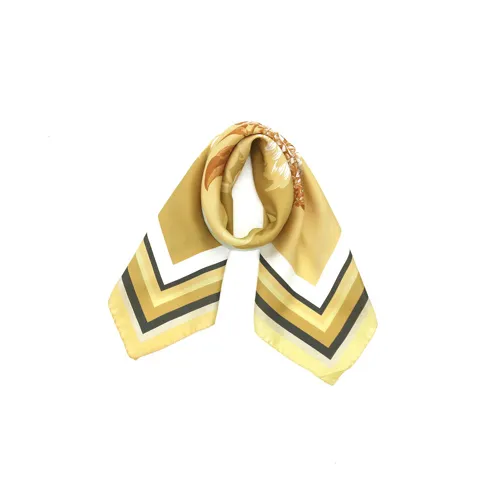 小ぶりなスクエアサイズで、アスコットタイのようにシャツやブラウスの中におさめて使うこともできます。室内でも巻いたままでいられるので使いやすくなっています。