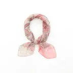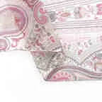 一枚でお洒落が華やかになるスカーフ。落ち着いたピンクベースの色使いで合わせやすさとアクセント効果の両方を兼ねた使いやすい一枚です。