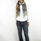 ダイナミックなデザインが描かれた稀有なストール。一巻きでサマになる、デザイン性の高い一枚です。