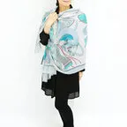 スタンダードな大判サイズで巻きでも羽織でもどちらでも使いやすくなっています。特に春夏の日除けや冷房対策としても使いやすく、ファッションのアクセントとしてなら一年中使うことができます。