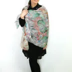 大判サイズのストールで肩から羽織る使い方もできます。春夏の日除けや室内の冷房対策としても使いやすくなっています。