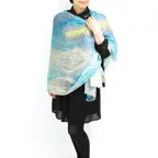 大判サイズのストールで肩から羽織る使い方もできます。春夏の日除けや室内の冷房対策としても使いやすくなっています。