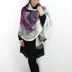まるで水彩画を映したかのような涼しげなデザインが目を惹く一枚。凛とした美しさを誇る、名品ストールです。
