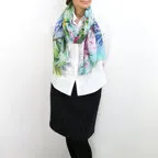 スタンダードな大判サイズで巻きでも羽織でもどちらでも使いやすくなっています。特に春夏の日除けや冷房対策としても使いやすく、ファッションのアクセントとしてなら一年中使うことができます。