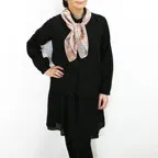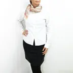 小ぶりなスクエアサイズで、アスコットタイのようにシャツやブラウスの中におさめて使うこともできます。室内でも巻いたままでいられるので使いやすくなっています。