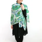 スタンダードな大判サイズで巻きでも羽織でもどちらでも使いやすくなっています。特に春夏の日除けや冷房対策としても使いやすく、ファッションのアクセントとしてなら一年中使うことができます。