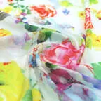 花畑のような美しさに視線が奪われるストール。ワンピースやTシャツなどシンプルになりがちな春夏のおしゃれがこれ一枚でパッと華やかに!