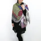 大判サイズのストールで肩から羽織る使い方もできます。春夏の日除けや室内の冷房対策としても使いやすくなっています。