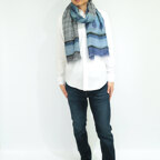 大判サイズのストールで肩から羽織る使い方もできます。春夏の日除けや室内の冷房対策としても使いやすくなっています。