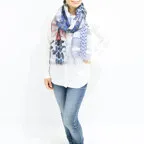 大判サイズのストールで肩から羽織る使い方もできます。春夏の日除けや室内の冷房対策としても使いやすくなっています。