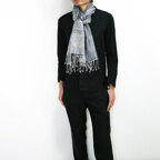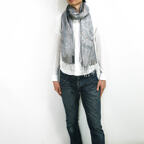 スタンダートな大判サイズで巻いても羽織っても、どちらも使いやすいタイプです。特に羽織は全体の印象がパッと華やかに、エレガントな雰囲気に変化します。