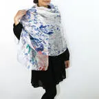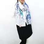 大判サイズのストールで肩から羽織る使い方もできます。春夏の日除けや室内の冷房対策としても使いやすくなっています。