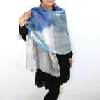 大判サイズのストールで肩から羽織る使い方もできます。春夏の日除けや室内の冷房対策としても使いやすくなっています。