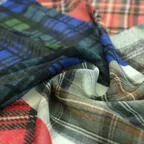 幾何学とチェック・ボーダーが融合したおしゃれな柄。メンズライクなデザインが、知的な大人らしさを引き立てます。