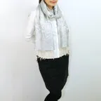 バランスがよいミドルサイズのため、ボリュームを抑えつつ様々な場面で活用できます。巻きでも羽織でもどちらでも使いやすくなっています。
