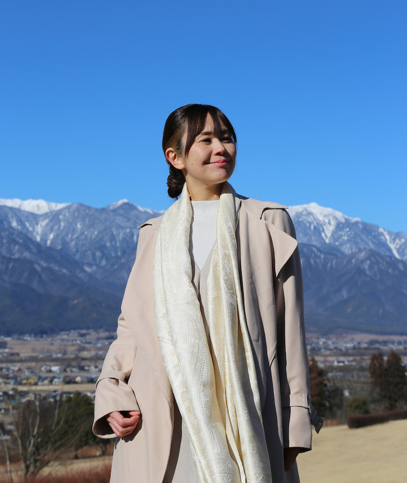 和装とも相性が良く、さらにアクセントとしてならカジュアルな装いにも合わせられる、とても使い勝手の良いストールです。