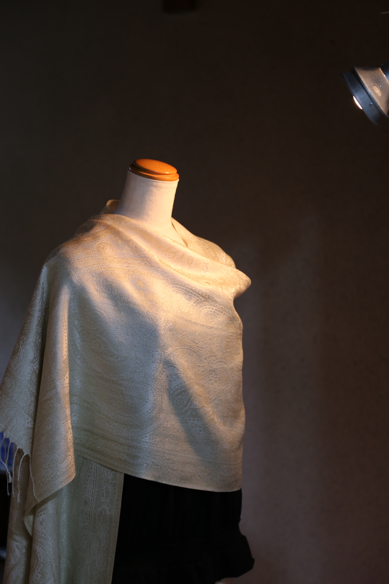こんなにも淡く美しい表情が出せるのは上質なシルク100%ストールであればこそ!